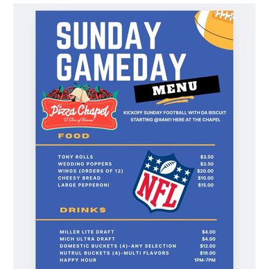 Join us every Sunday for all the NFL games! Plenty of food and drink specials to go along with great company!