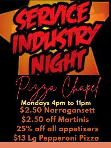 Dine-in food and drink specials every Monday to support our local service industry customers!