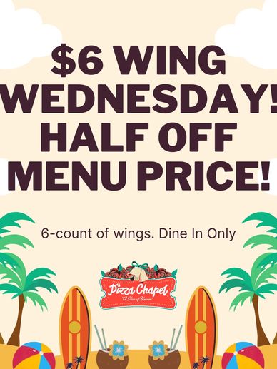 Enjoy a slice of our cheese or pepperoni pizza every Tuesday for just $2! Dine in only. Max of 2 slices per customer.